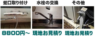 西宮市で蛇口の水漏れ、パッキン交換、カートリッジ交換など水廻りの蛇口に関するトラブルはお気軽にご相談ください。キッチンやお風呂、洗面などの蛇口から屋外蛇口にも対応可能です。